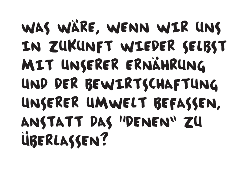 Nachwachstumsgesellschaft ist ein Zukunftsentwurf. Ein Bild einer Gesellschaft, in der die Potenziale aller Menschen zum Tragen kommen. Die Leidenschaften werden ausgelebt, Neigungen werden berücksichtigt. Im Unterschied zu unserer aktuellen Gesellschaft konzentrieren die Bewohner dieser urbanen Bevölkerung allerdings ihre Talente verstärkt auf die gemeinschaftliche Nahrungsmittelproduktion. Der Entwurf ist als Ausstellungskonzept gedacht, weshalb sich die Frage stellte: