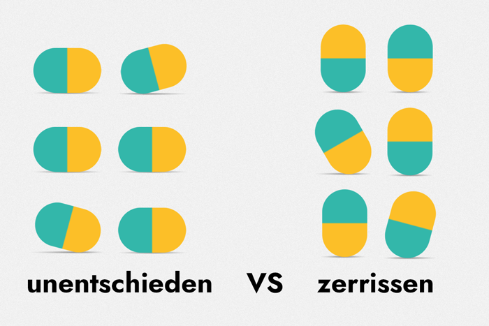 - Der psychische Prozess des Abwägens zweier Optionen wird durch das physische Abwägen des Bitweens verkörpert.
