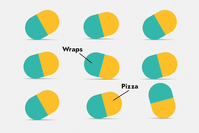 Stehen alle mit der gelben Seite nach oben, würde man zum Beispiel Pizza zum Mittagessen bestellen anstatt für alle MitarbeiterInnen Wraps zu wickeln. Man könnte die Abstimmung mit "7 sind dafür, zwei sind dagegen" zusammenfassen.