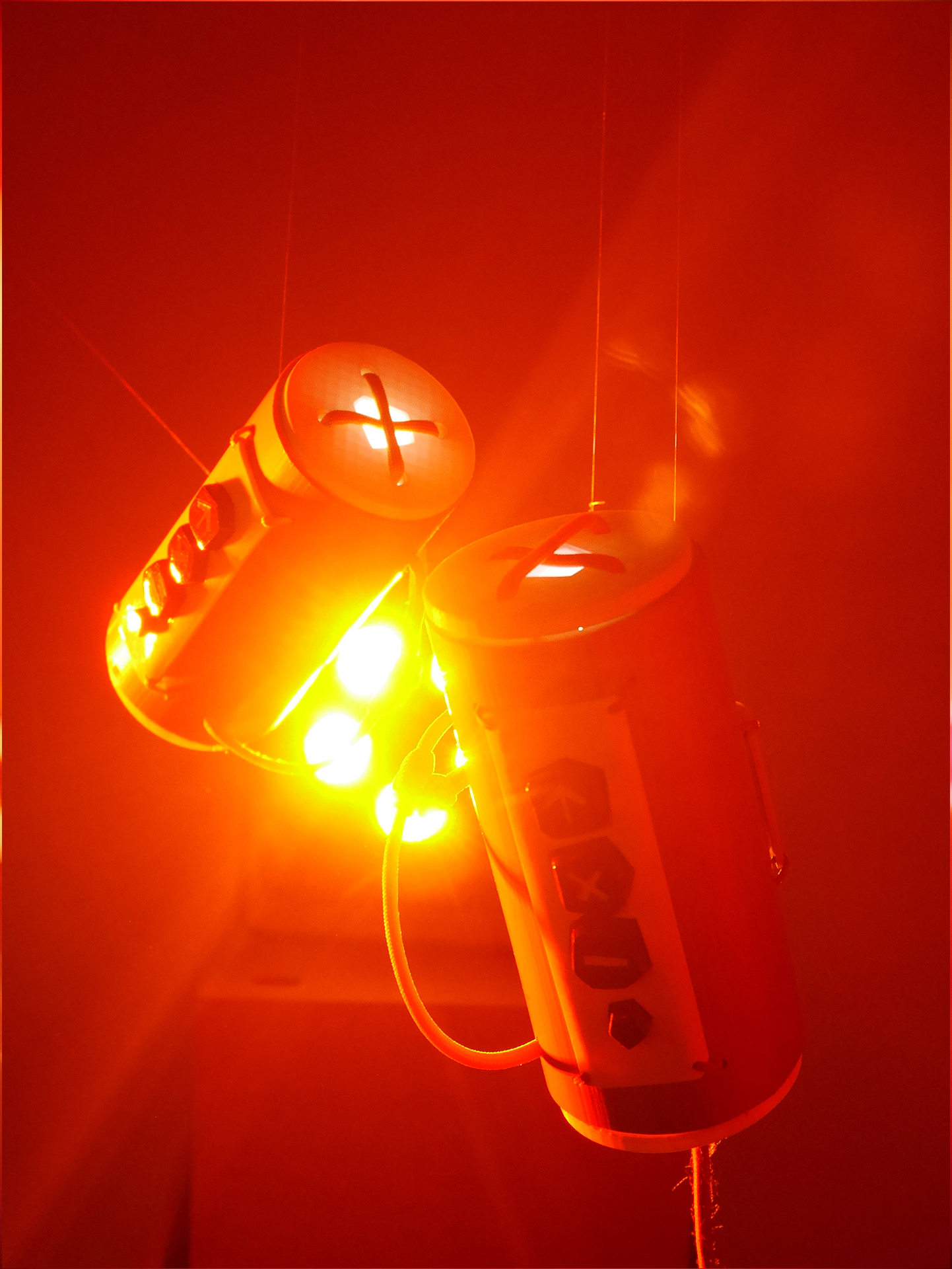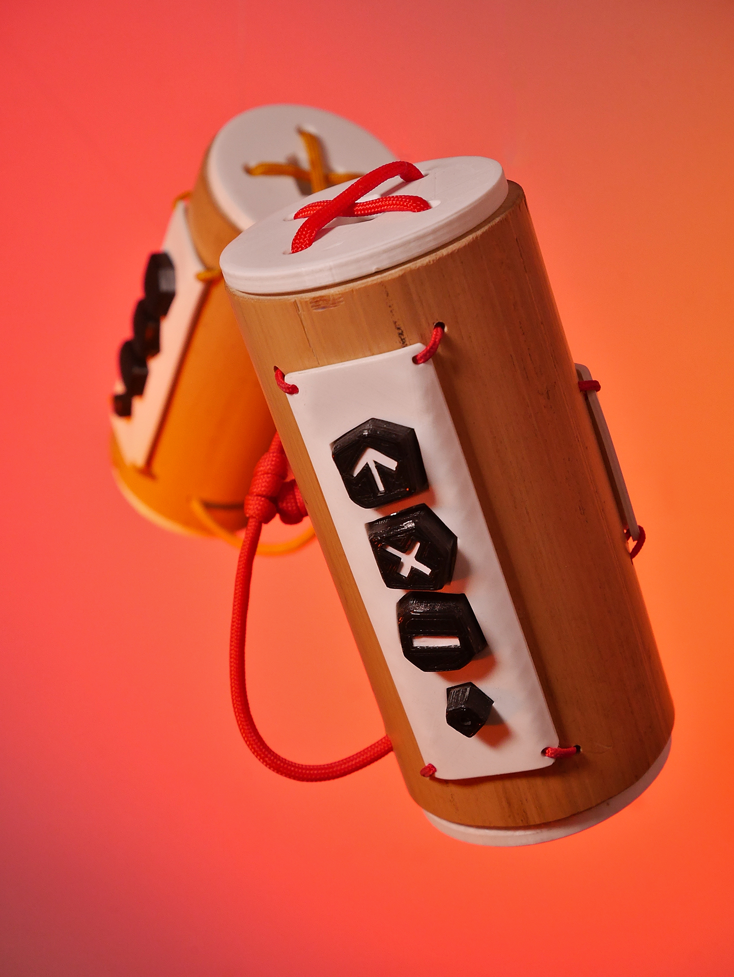 So sperrig und schwer zu verstehen das Konzept hinter TAKA TUKA ist, so leicht ist die Bedienung. Der Lichtjockey hält TAKA in der einen und TUKA in der anderen Hand. Durch Drücken der Tasten legt er fest, was er steuert, durch die Bewegung des Controllers beeinflusst er das Licht. Das ermöglicht dem Lichtjockey bei Partys oder ähnlichen Veranstaltungen seinen Platz in der Ecke des Raumes zu verlassen und mit den Gästen zu tanzen. TAKA TUKA lässt jeder Nutzerin Zugriff auf alle Bestandteile entsprechend ihrer Fähigkeiten. Wer 3D-Drucken kann, kann die Tasten variieren, wer sägen und bohren kann, kann die einzelnen Bestandteile in ein anderes Gehäuse bauen. Wer einen Computer bedienen kann, kann die Zuweisung der Tasten verändern, und wer programmieren kann, kann die gesamte innere Logik der Controller verändern. Alle von mir entworfenen Teile von TAKA TUKA sind komplett durch die Verwendung von Open Source Software reproduzierbar. Die verwendete Elektronik ist günstig und niederschwellig online kaufbar.